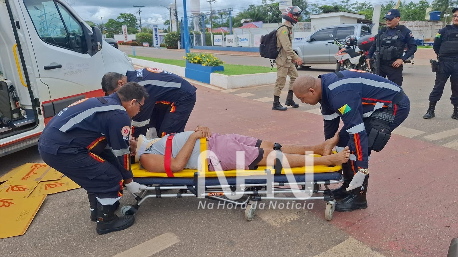 O ciclista Sidney Silva de Souza, de 47 anos, ficou ferido após invadir a preferencial de uma rotatória na manhã deste sábado (10), na Via Chico Mendes, no bairro Comara, região do Segundo Distrito de Rio Branco.