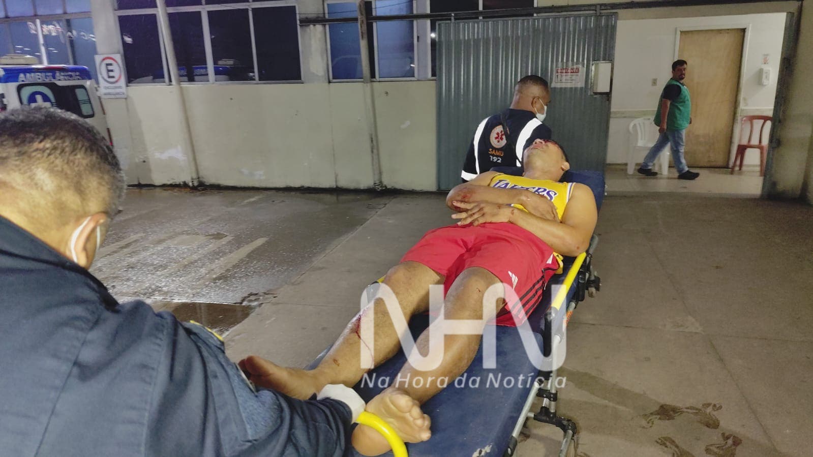 Um acidente de trânsito envolvendo duas motocicletas deixou o motoboy Osmildo Paiva Melo, de 34 anos, ferido, e Romário Pereira dos Santos com escoriações na noite deste sábado (17), no cruzamento das ruas El Salvador e Sérvia, no bairro Cabreúva, em Rio Branco.