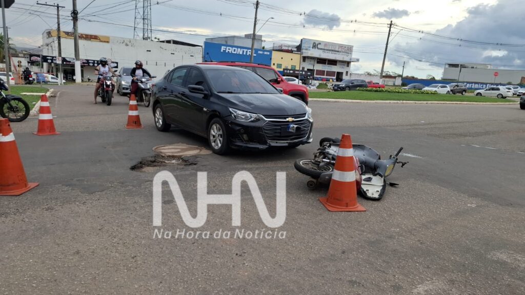 De acordo com informações, o acidente ocorreu no momento em que o Onix, de placa QWN5I04, finalizava o contorno de uma rotatória, atingindo a motocicleta Honda Biz, de placa MZT-6574, que trafegava no sentido Centro–Bairro. Com o impacto, Anderlei sofreu uma fratura fechada na perna esquerda e caiu ao solo.