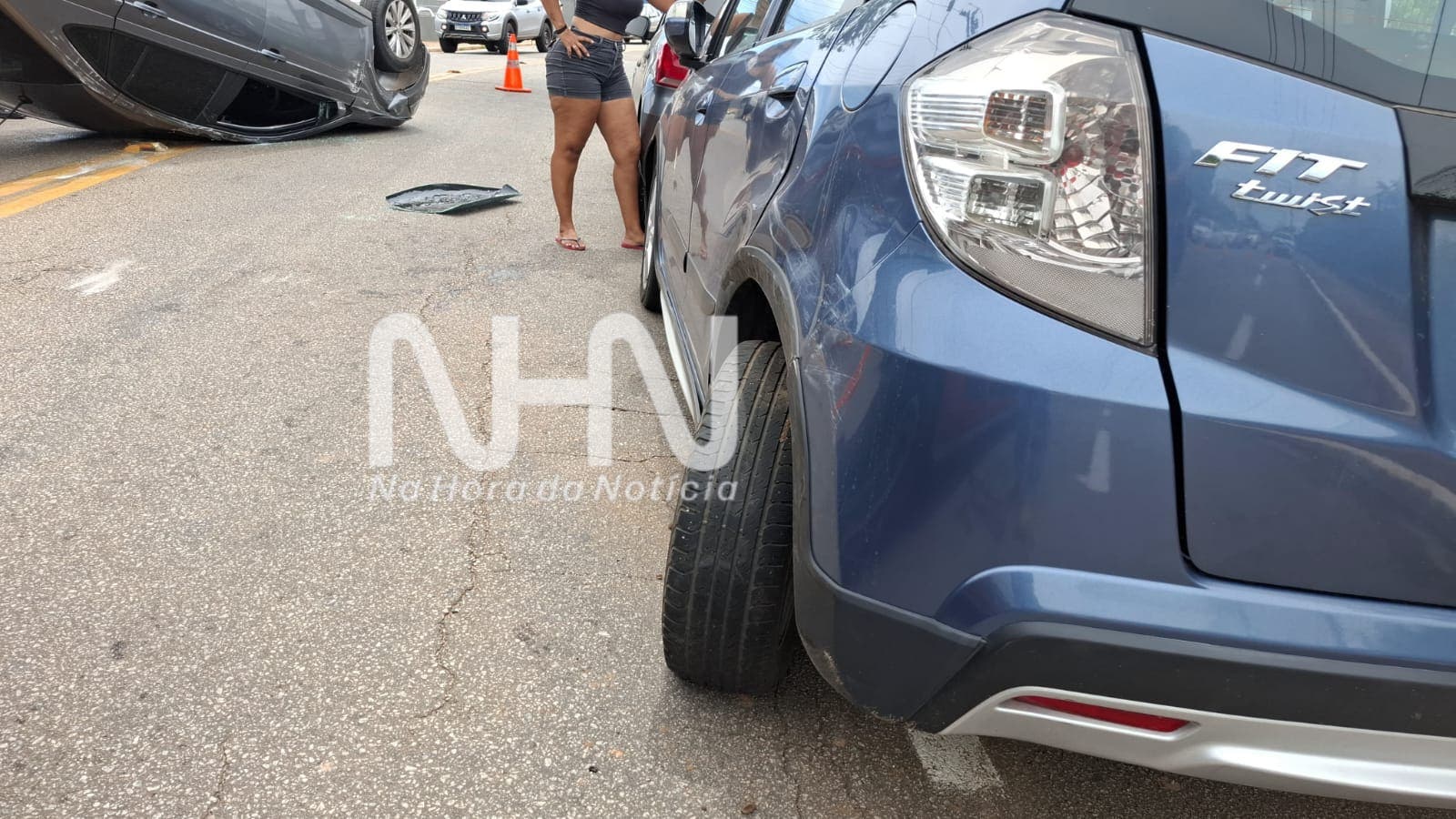 Com o impacto, o Virtus capotou e atingiu ainda um terceiro veículo, um Volkswagen Gol cinza (placa QLX-6G78), também estacionado no local.