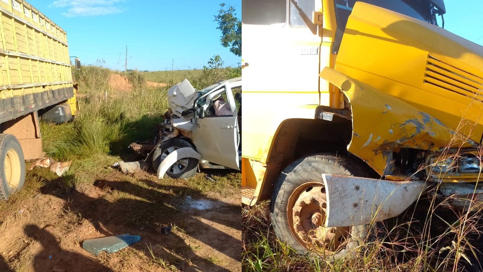 Criança e três adultos ficam feridos após colisão frontal entre caminhonete e caminhão no interior do Acre