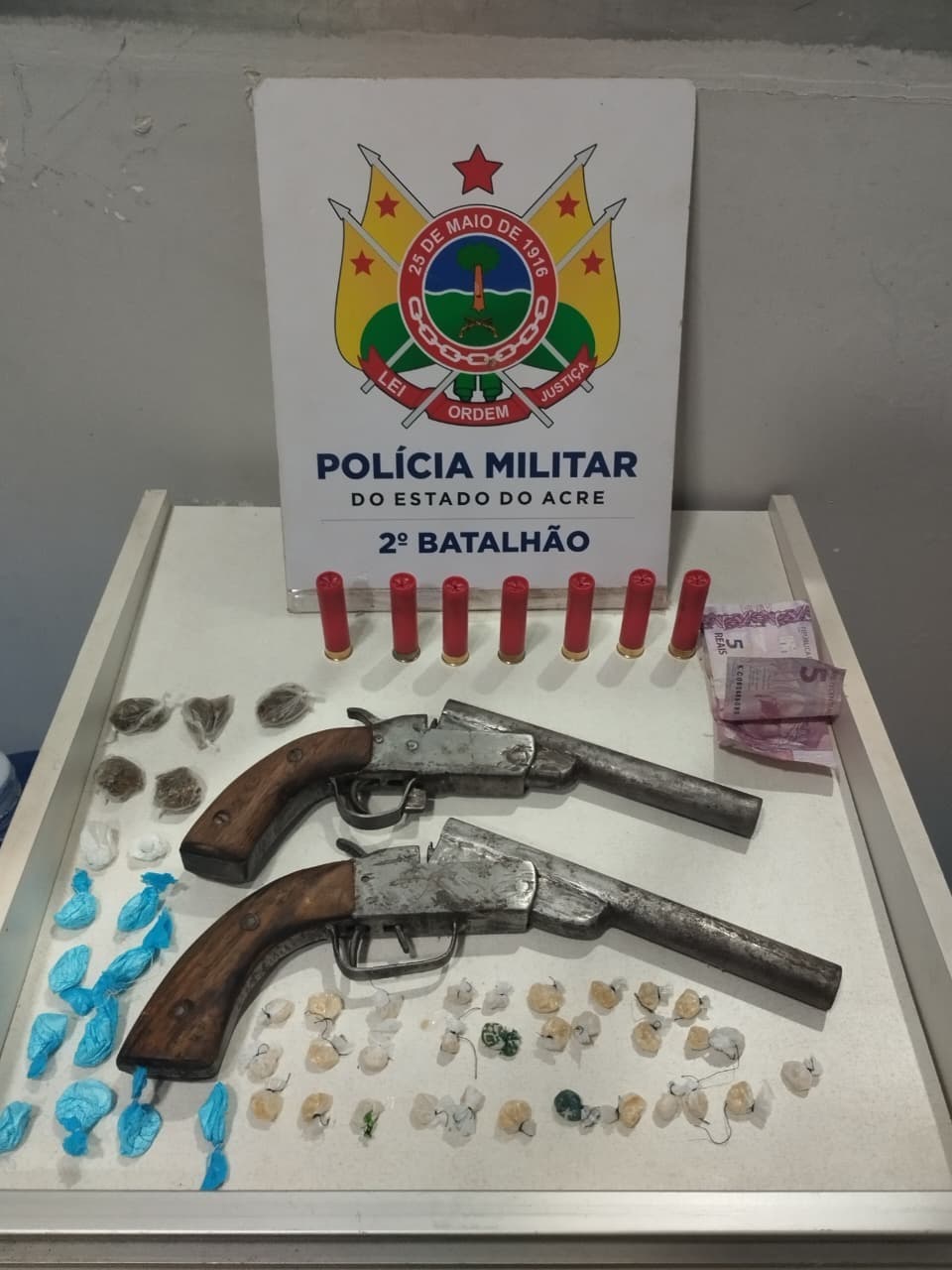 Eduardo, que se rendeu, afirmou à PM que fazia a “segurança” do local ao lado de Yago e que as armas seriam usadas “apenas para proteção”.