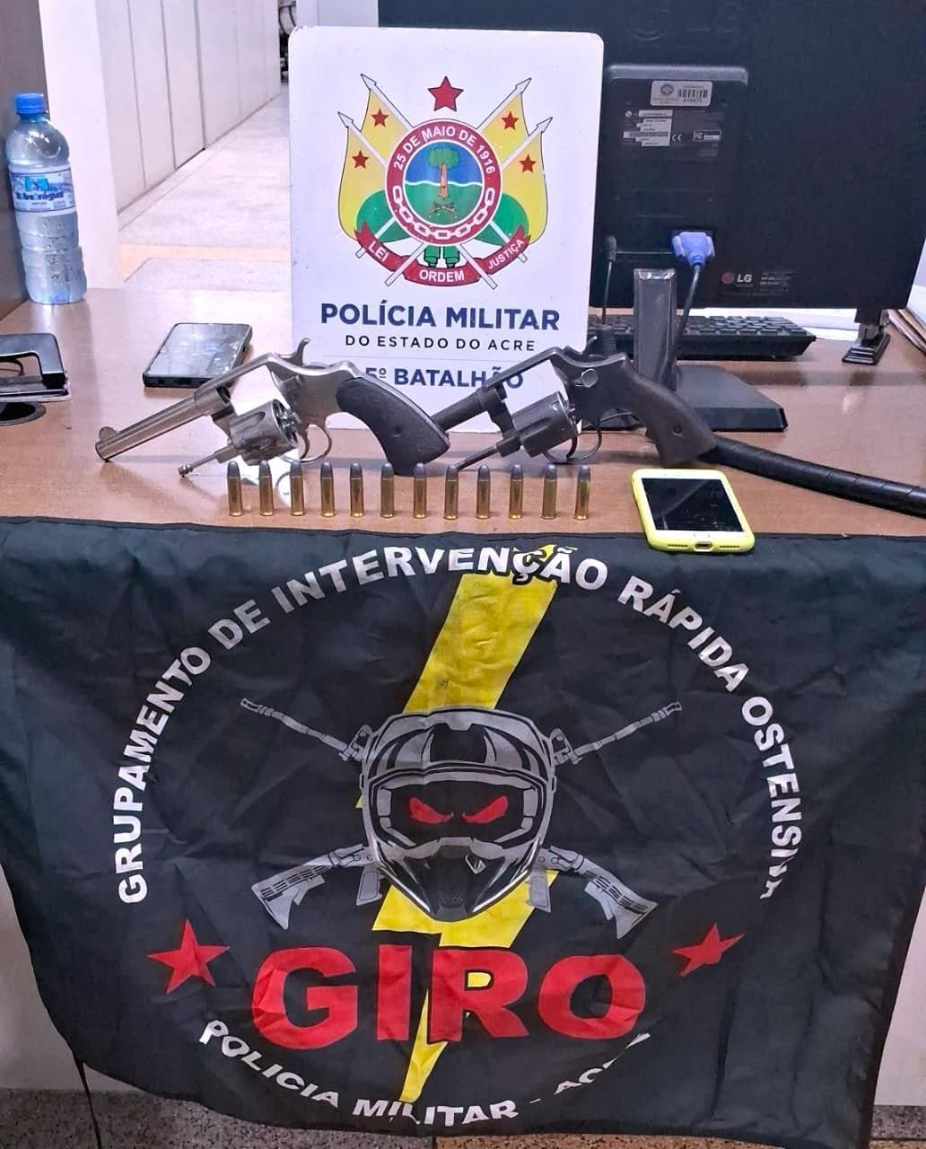 Com eles, foram apreendidos dois revólveres, ambos municiados, sendo um com a numeração suprimida.