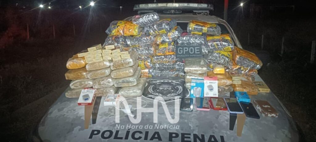 Durante a ação, foram apreendidos cerca de 20 quilos de maconha, 30 quilos de tabaco e quatro aparelhos celulares, que seriam destinados aos detentos que realizam trabalhos externos no presídio. Após a abordagem, os dois homens receberam voz de prisão e foram encaminhados à Delegacia de Flagrantes (Defla), onde permanecem à disposição da Justiça.