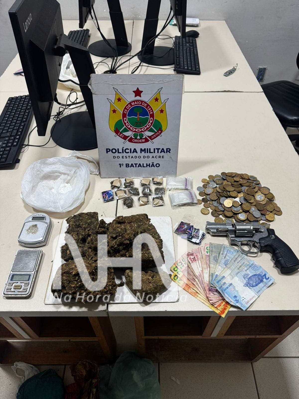 Uma ação de policiais militares do 1° Batalhão resultou na prisão de Alan da Silva, de 23 anos, e Thiago da Silva, de 18 anos, pelo crime de tráfico de drogas. A ocorrência foi registrada na noite desta quarta-feira (15), em uma residência localizada na Rua Habitat Brasil, no bairro João Eduardo, em Rio Branco.