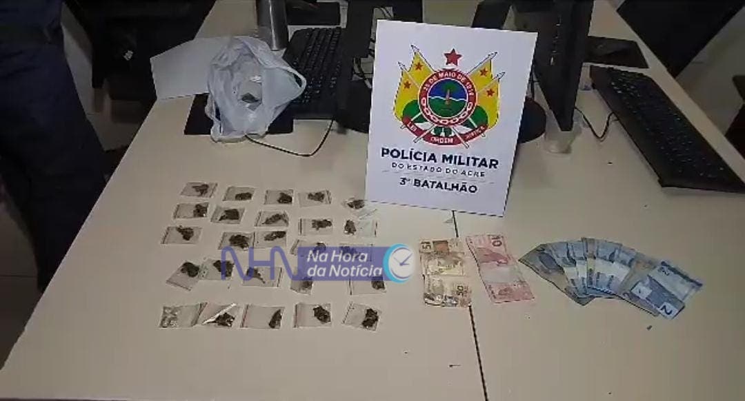 O traficante Alfredo Freitas Santiago, 18 anos, foi preso acusado de tráfico de drogas na noite desta terça-feira (10), na Invasão do Panorama, na região do São Francisco, em Rio Branco.