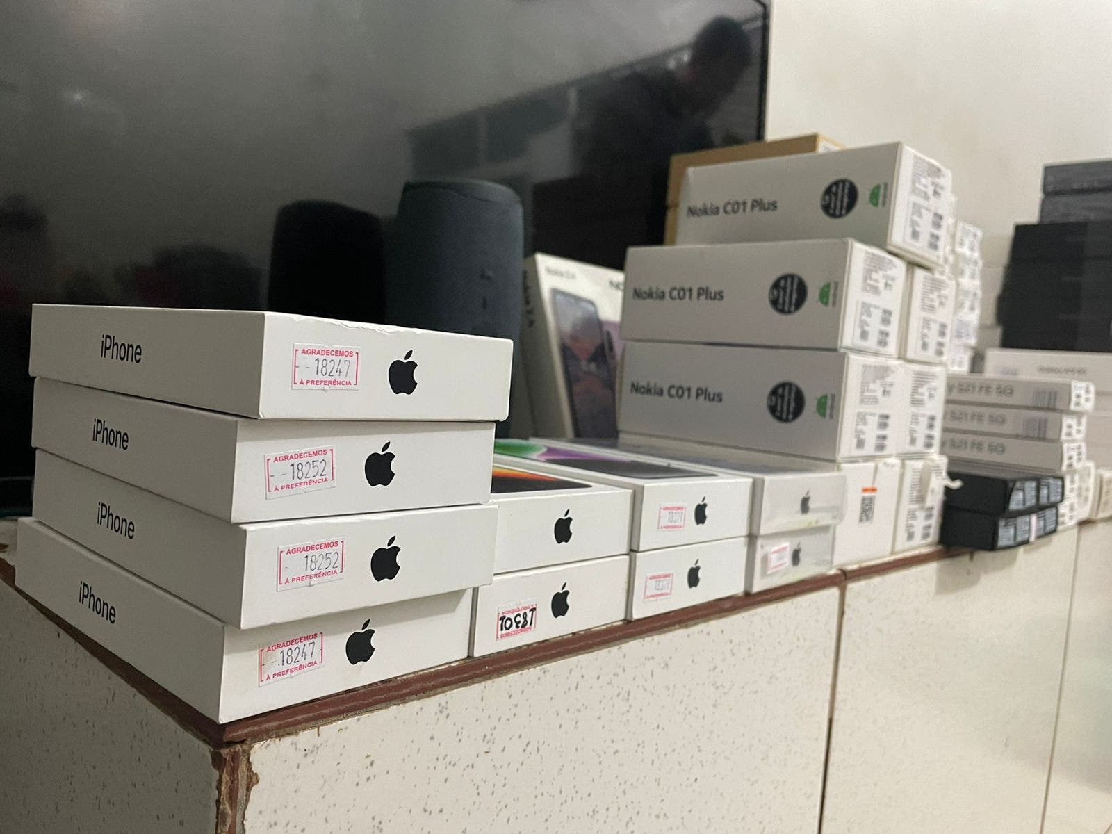 A equipe policial recebeu a informação do possível local para onde os envolvidos teriam levado os produtos roubados e se deslocaram ao endereço, na vila Betel. Lá encontraram várias pessoas em uma varanda, que ao visualizarem a polícia, se evadiram, deixando várias sacolas plásticas. Dentro delas estavam os aparelhos celulares, 178 no total, das marcas iPhone, Samsung, Nokia e Motorola, e ainda roteadores, consoles de game, caixas JBL, além do dinheiro.
