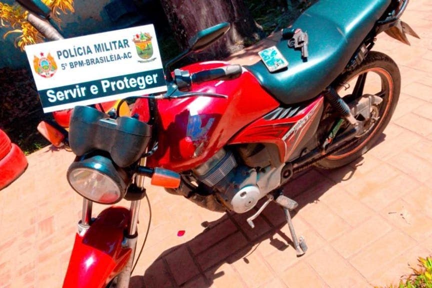 A motocicleta foi apreendida após denúncia de que dois homens estariam cometendo roubos na região, usando um veículo com as mesmas características. Ao ser localizada pelos polícias, os homens empreenderam fuga, no entanto abandonaram a moto, um revólver e dois celulares.