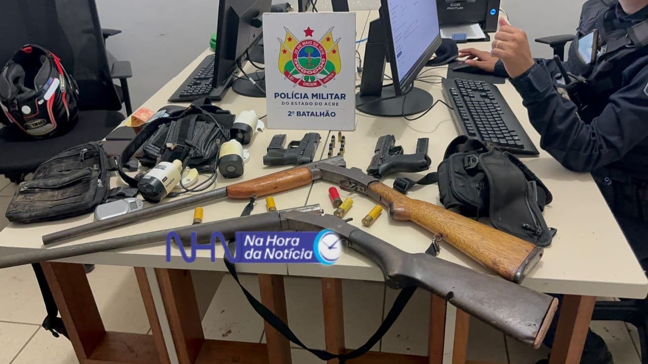 Na residência ainda foram encontradas duas espingarda calibre 12 com 5 cartuchos intactos.