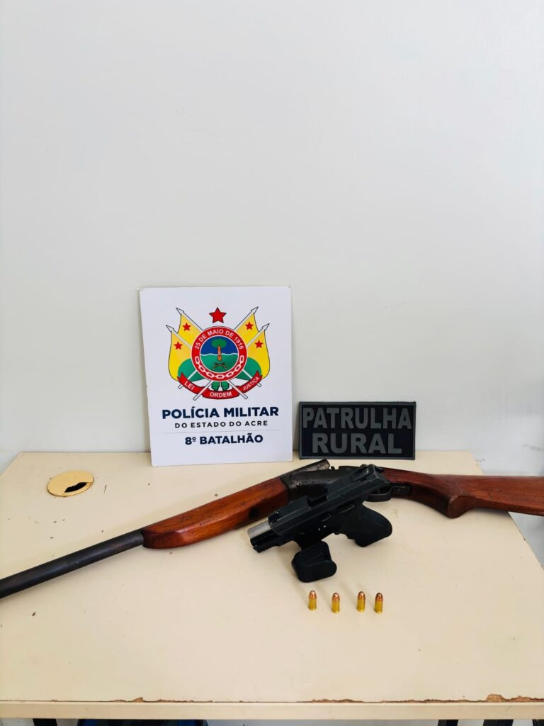 Policiais militares do 8° Batalhão, aprenderam duas armas de fogo na zona rural de Sena Madureira, na terça-feira, 03, após denúncia.