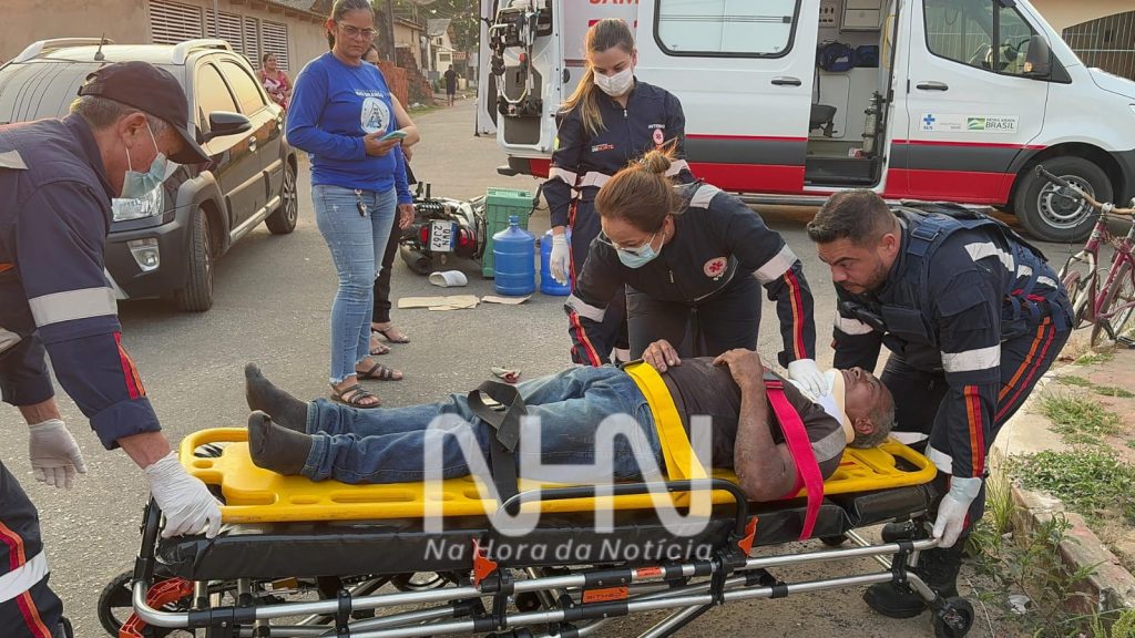 O entregador Raimundo Cardoso de Araújo, 48 anos, ficou ferido após uma colisão entre motos na tarde desta terça-feira (30), no cruzamento da rua São Raimundo com a travessa São Miguel, no bairro Cadeia Velha, em Rio Branco.
