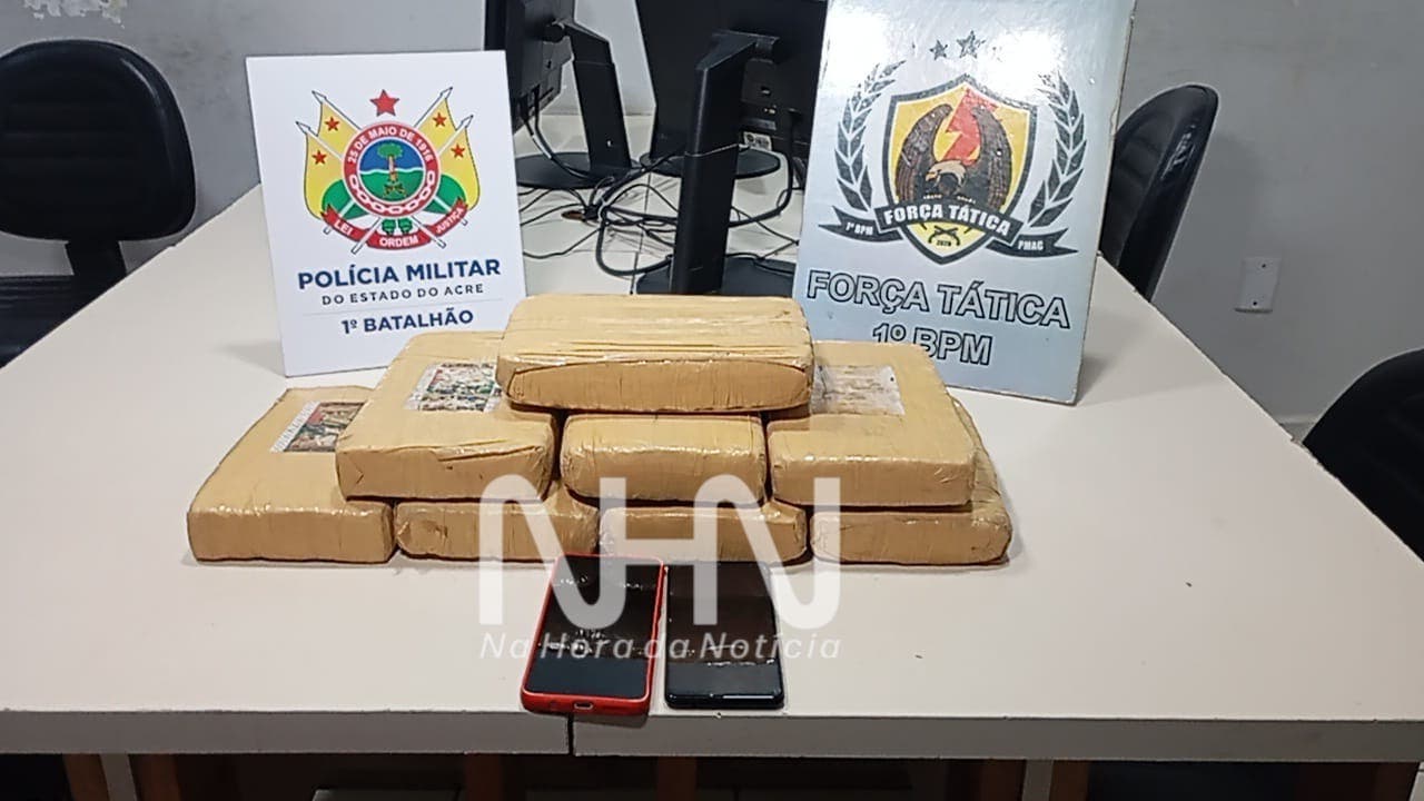 Uma ação da Polícia Militar resultou na prisão de Udson Fonseca da Silva, 29 anos, na noite desta quinta-feira, 27, após ele ser flagrado transportando oito tijolos de maconha — cerca de oito quilos — escondidos dentro de uma bag de entregador de lanches. A abordagem ocorreu na Rua Santa Terezinha, no bairro João Eduardo 2, em Rio Branco, após uma denúncia precisa que indicava horário e trajeto do suspeito.