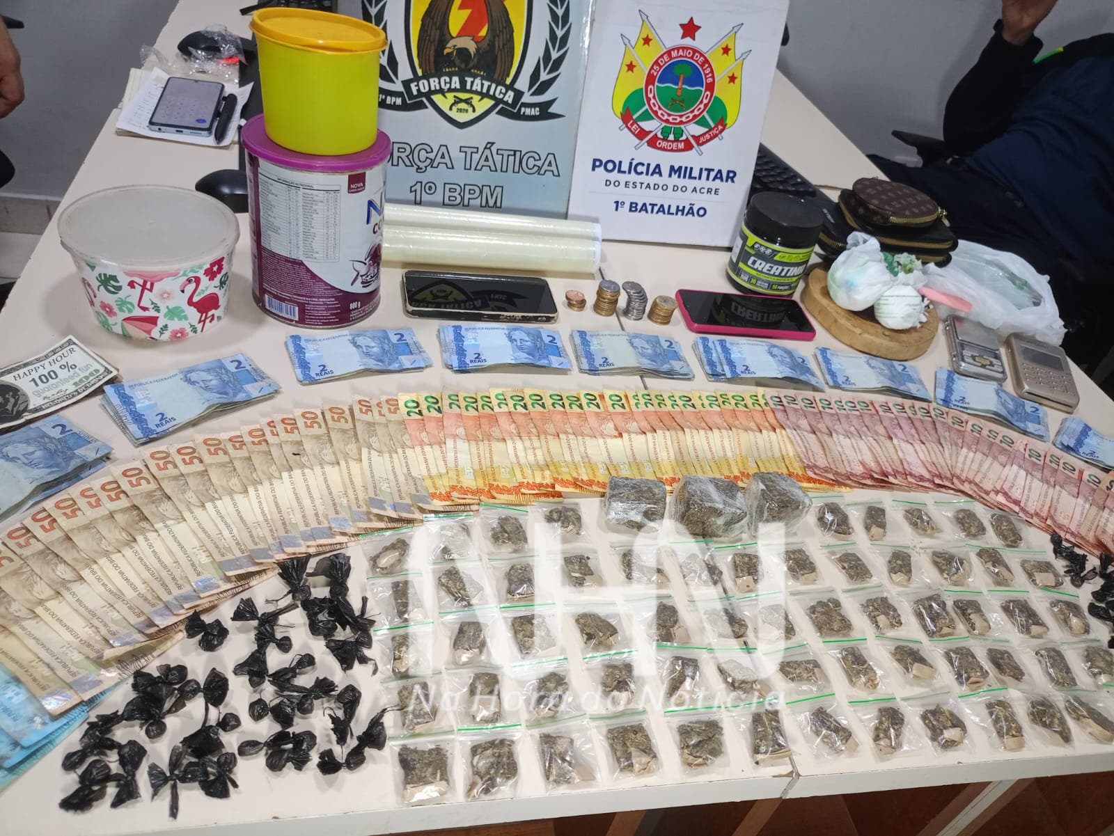 Bruno Assis Dossimo, 27 anos, foi preso na noite desta sexta-feira (11), acusado de tráfico de drogas e de comandar um centro de distribuição de entorpecentes na Rua Campo Novo, no bairro Airton Sena, região da Baixada da Sobral, em Rio Branco.