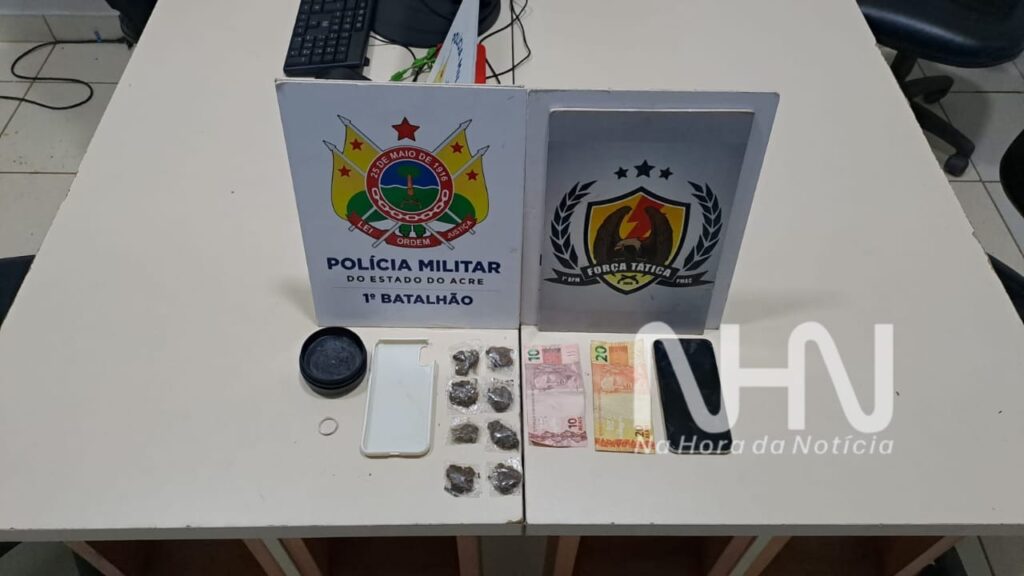 O indivíduo, identificado como Luis Henrique, recebeu voz de prisão pelo crime de desobediência. Durante a busca pessoal, os militares encontraram R$ 30 em espécie no bolso da bermuda do suspeito. Em seguida, com apoio de outras guarnições, foi realizada uma varredura no trajeto percorrido durante a fuga, resultando na apreensão de um pote plástico preto contendo uma substância vegetal esverdeada com características e odor semelhantes à droga conhecida como “skunk”, de alto poder entorpecente.