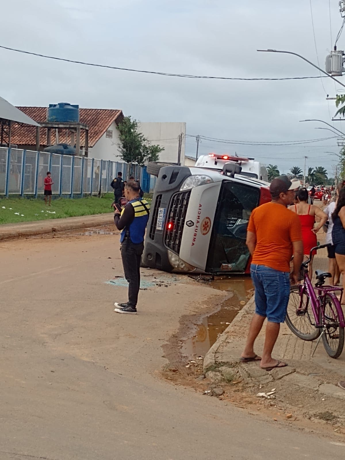 Uma ambulância do Serviço de Atendimento Móvel de Urgência (SAMU) tombou após se envolver em uma colisão com uma caminhonete Hilux na tarde deste sábado (15), no cruzamento das ruas Antônio Nicácio Teixeira e Guanabara, nas proximidades da Secretaria Municipal de Saúde, no Bairro Vitória, em Sena Madureira.