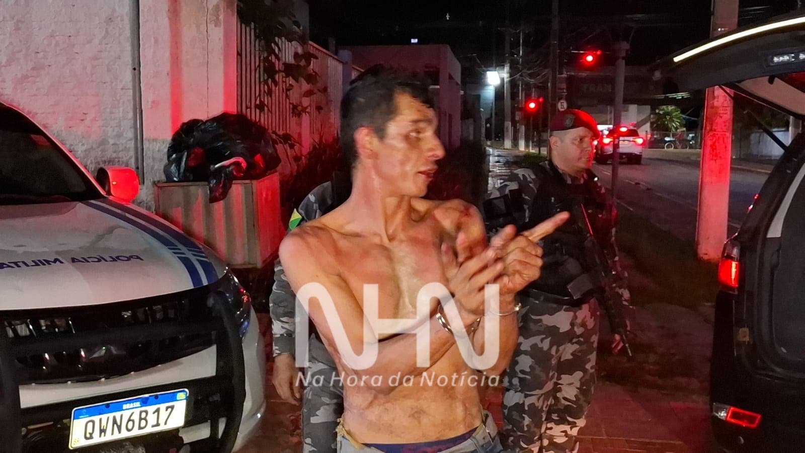 Equipes do 2° Batalhão da Polícia Militar, com apoio do Batalhão de Choque (Choque), foram acionadas e chegaram rapidamente ao endereço, encontrando o agressor ainda dentro da residência. Charles foi preso em flagrante.