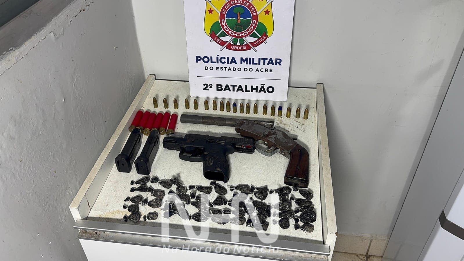 Homem é preso com armas e drogas durante patrulhamento policial no bairro Belo Jardim II, em Rio Branco