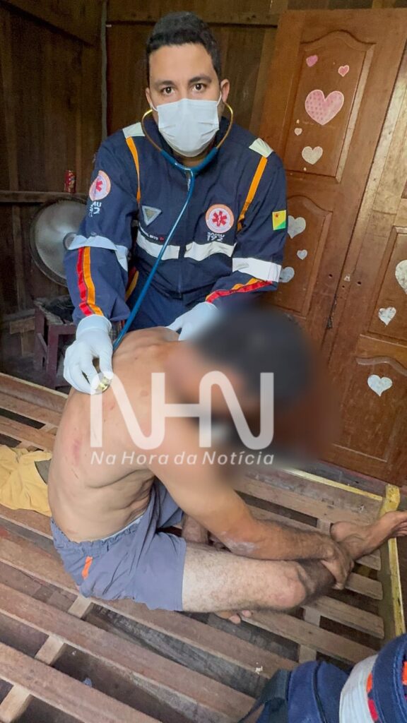 Ao chegar à residência, Alcimar já havia recobrado a consciência e foi atendido pelo médico plantonista Neto. Após uma rápida avaliação, o profissional constatou vários hematomas nas costas, possivelmente provocados por golpes de ripa, além de suspeita de fratura no braço esquerdo.