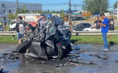 Policiais militares do Batalhão de Trânsito estiveram no local, isolaram a área para a realização da perícia e organizaram o fluxo de veículos na região.