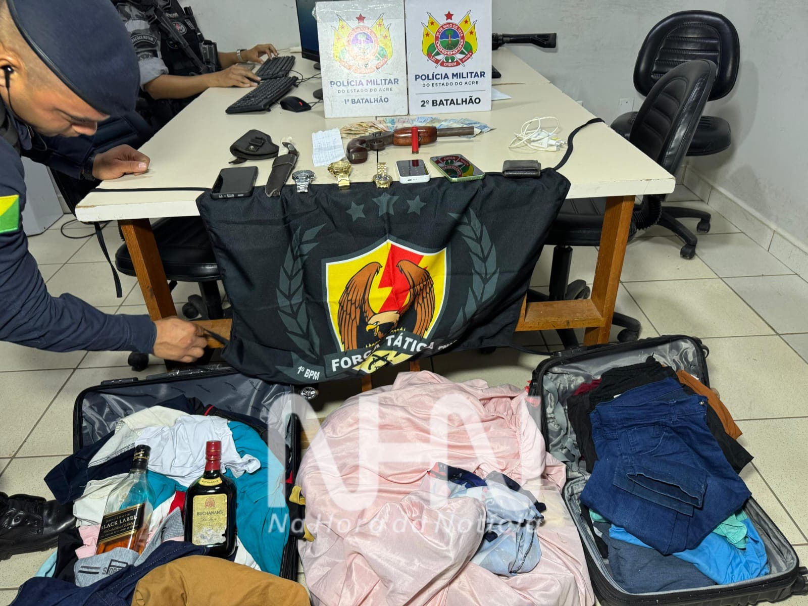 Os criminosos Felipe Lima da Silva, de 22 anos e Abrahão Brandão Monteiro, de 23 anos, foram presos acusados de roubo, extorsão, porte ilegal de arma de fogo e falta de habilitação para conduzir veículo auto motor, na noite desta sexta-feira (9). O crime aconteceu no Residencial Bonsucesso na região da Baixada da Sobral e as prisões ocorreram nas proximidades do Parque Industrial, na BR-364, no bairro Belo Jardim 2, na região do Segundo Distrito de Rio Branco.