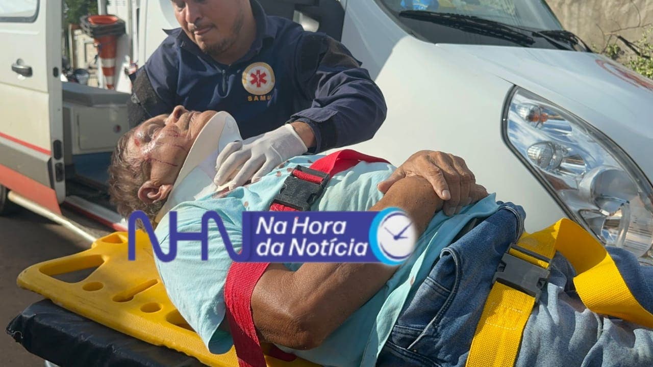 Na colisão, o idoso foi arremessado e bateu a cabeça violentamente contra o asfalto tendo um Traumatismo Craniano Encefálico (TCE) moderado, uma fratura no punho direito e um corte profundo no rosto além de escoriações pelo corpo.