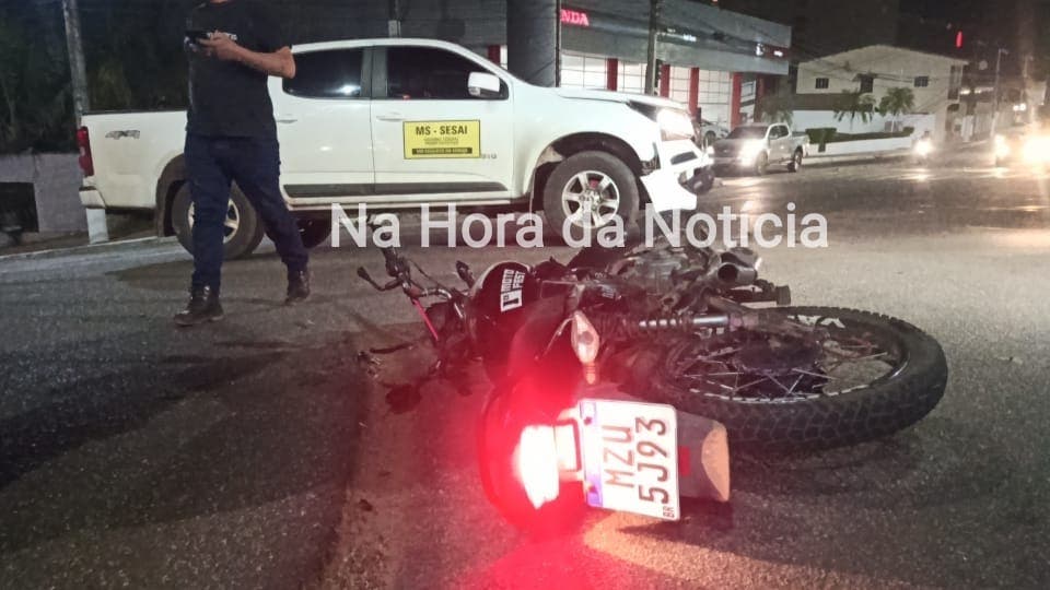 Jovem fica ferida após colisão entre caminhonete e moto em avenida de Rio Branco