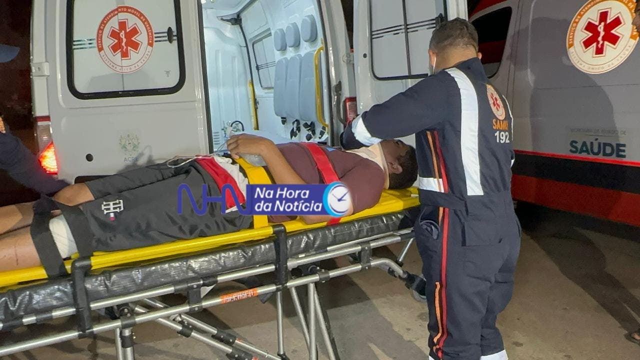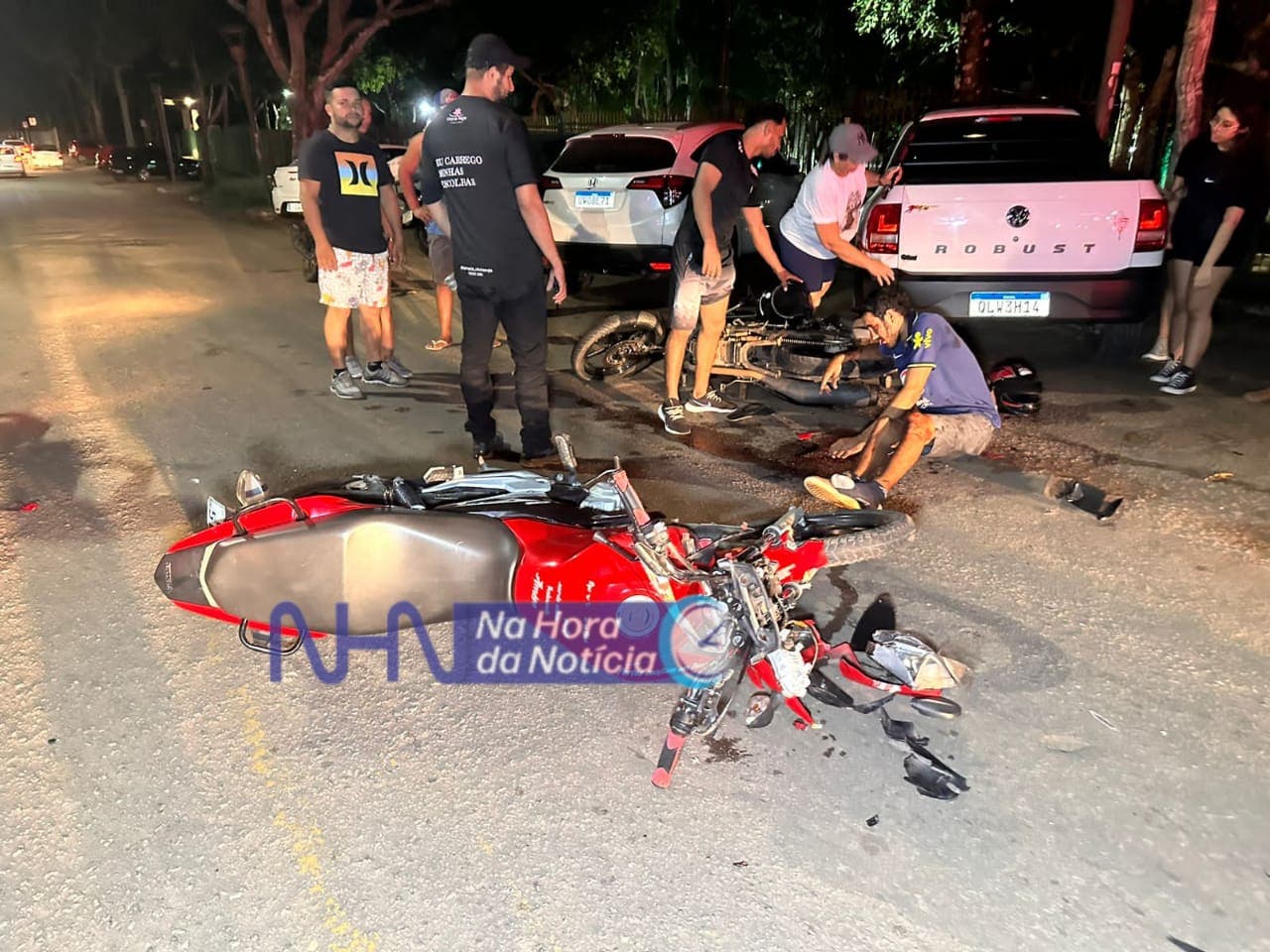Os motociclistas Vitor Alexsandro Souza da Costa, 20 anos, e Carlos Gabriel Santos da Silva, 26, ficaram feridos após uma colisão frontal na noite desta quinta-feira (11), próximo ao Horto Florestal, na rua José Magalhães, no bairro Conquista, em Rio Branco.