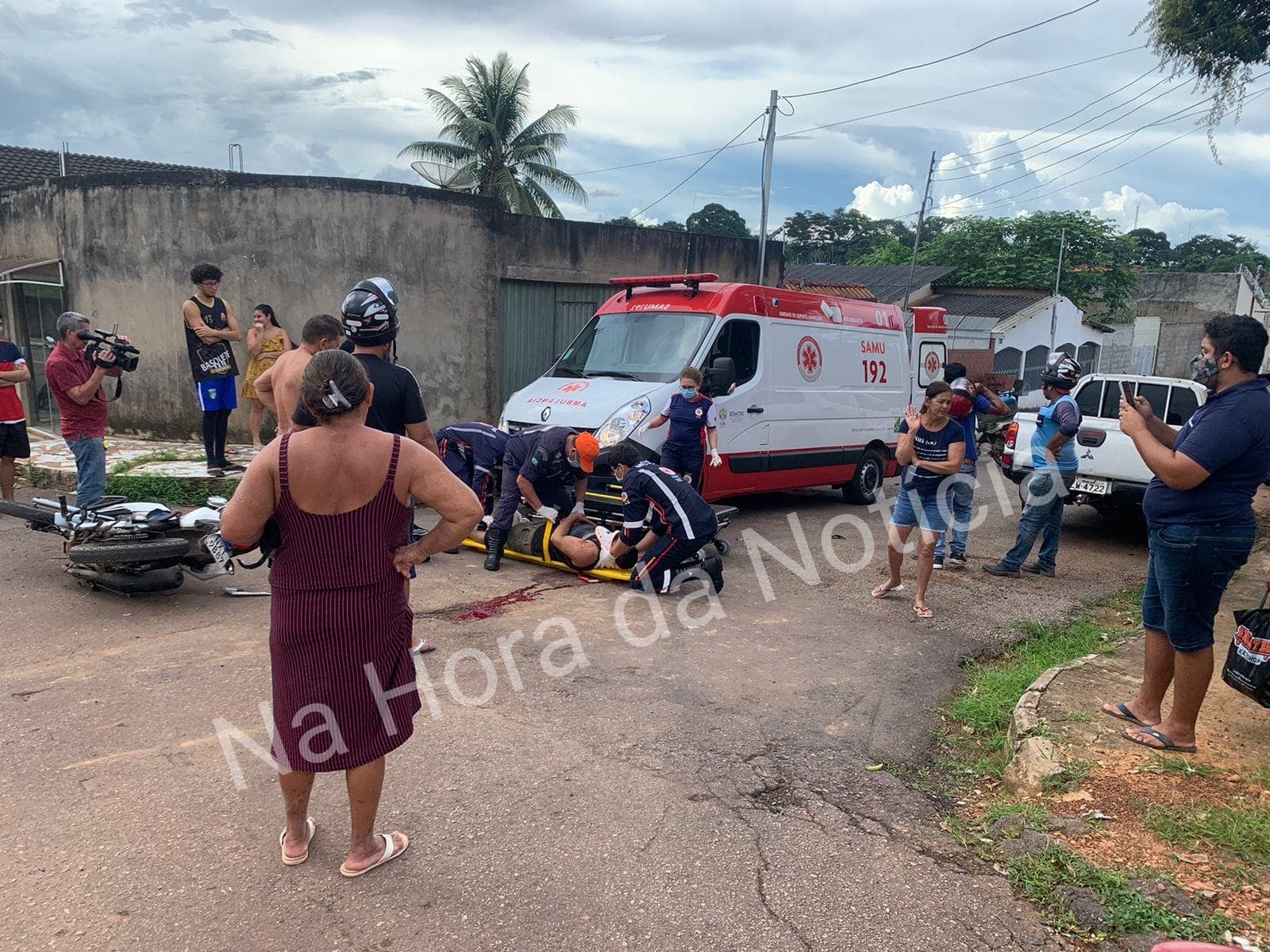 O motociclista identificado como Jhonneles, 30 anos, ficou gravemente ferido após ter invadido a preferencial e colidir com uma caminhonete na tarde desta sexta-feira (11), em um cruzamento na Rua Fragoso Monteiro, no bairro Conquista, em Rio Branco.