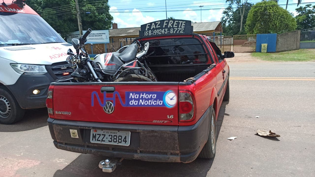 Motociclista empina moto, bate em caçamba e vai parar em estado gravíssimo no PS de Rio Branco