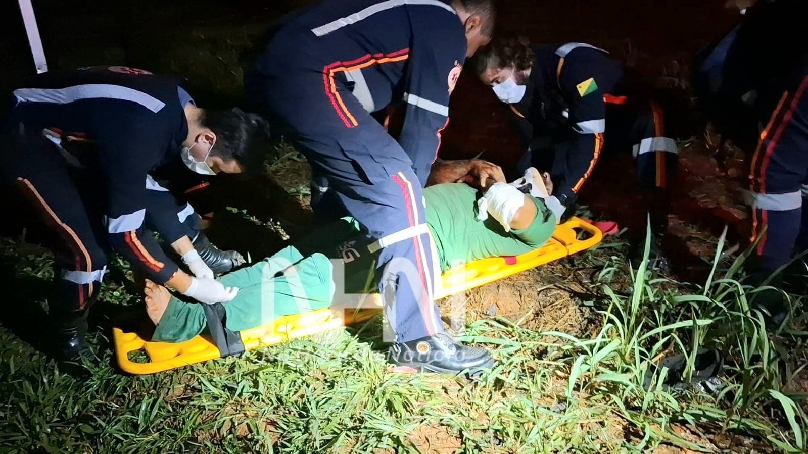 O motociclista Thiago Ferreira de Paiva, de 32 anos, ficou ferido após ser atingido por uma caminhonete Volkswagen Saveiro que invadiu a contramão na noite desta sexta-feira (21), na Travessa Beija-Flor, no bairro Calafate, em Rio Branco.