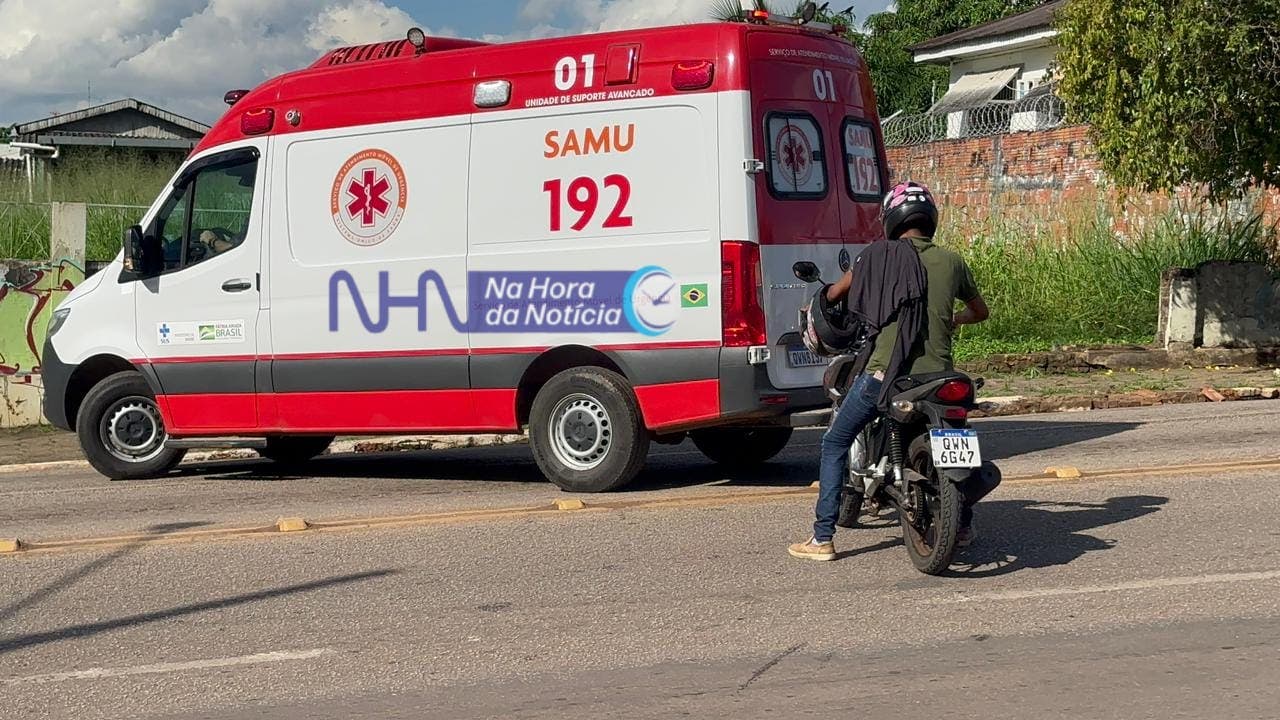 A jovem Sabrina de Souza Santos, 20 anos, ficou ferida após um acidente na tarde deste sábado (3), no cruzamento rua Rio Grande do Sul com a Floriano Peixoto, no bairro Preventório, em Rio Branco.