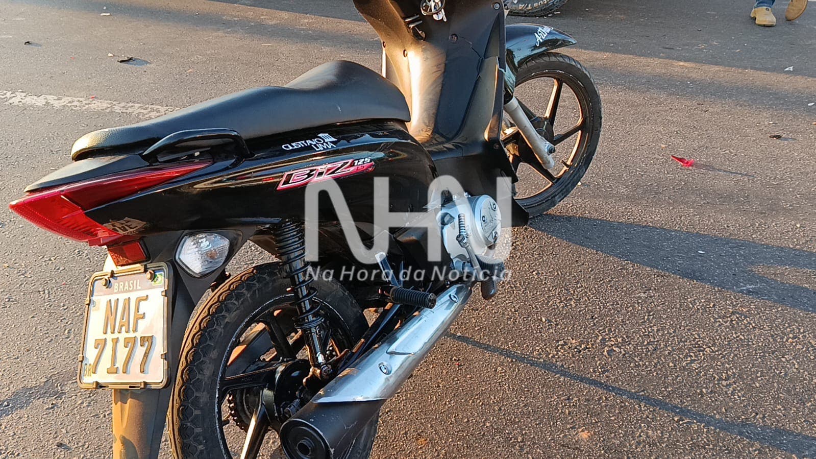 A motocicleta foi retirada da via e colocada sobre a carroceria da caminhonete. O pai da vítima e o condutor do veículo envolvido firmaram um acordo no local.