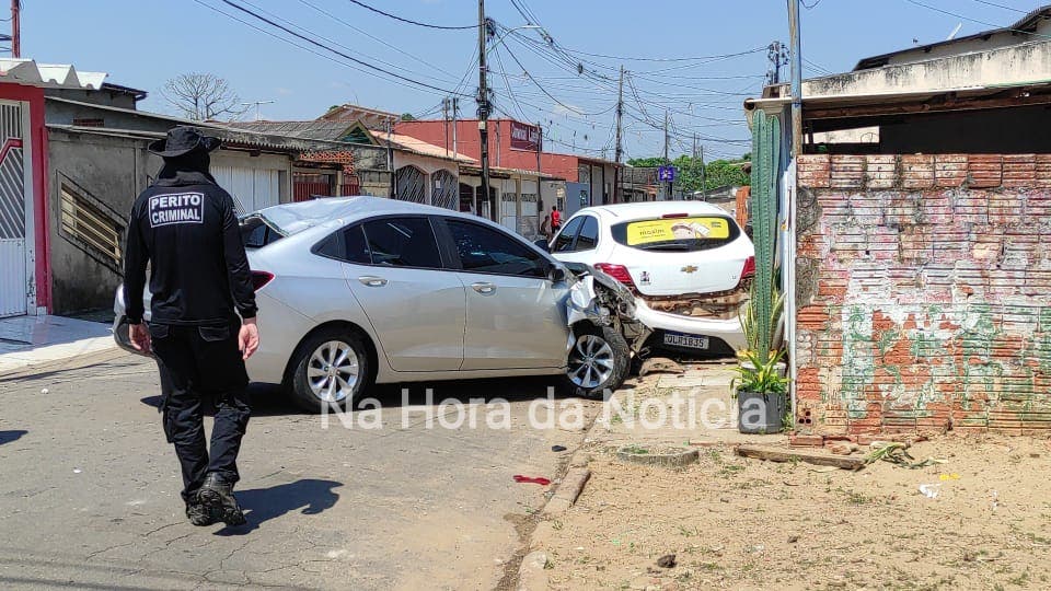 Depois que bateu na motocicleta, o motorista ainda bateu em outro carro modelo Onix, de cor branco e placa QLR-1B35 que estava estacionado na frente da casa do proprietário.