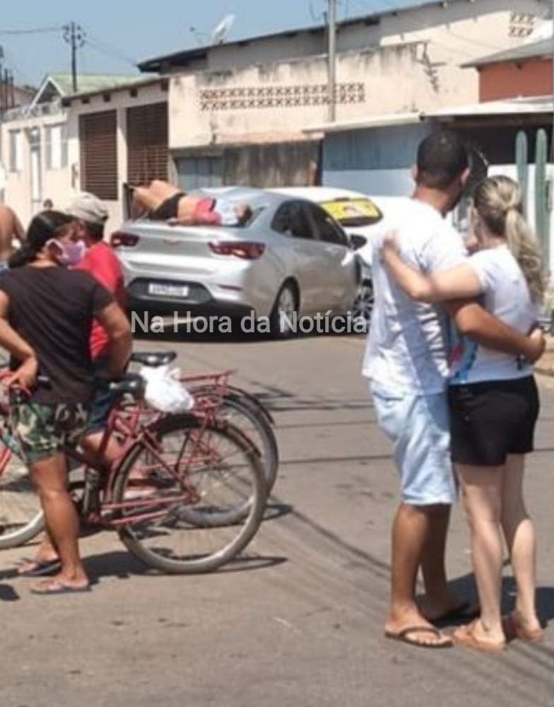 Com a força do impacto, Lídia acabou caindo em cima do veículo Onix de cor prata que causou os acidentes. O motorista permaneceu no local e prestou socorro a vítima.