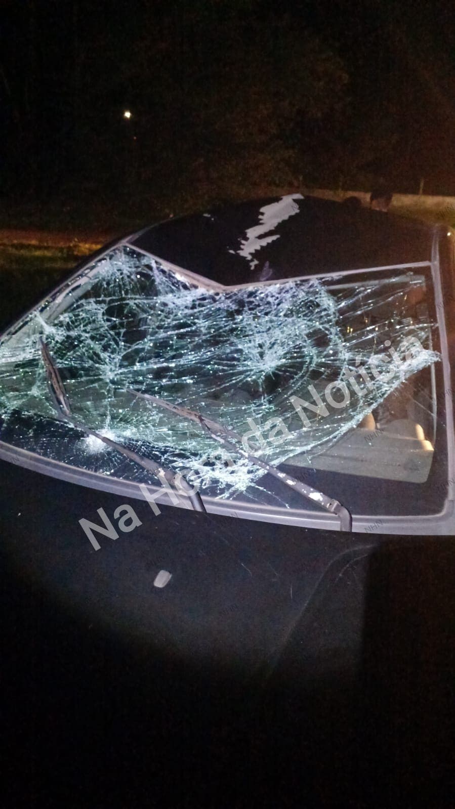 No impacto, Jean acabou batendo violentamente a cabeça no para-brisa e amassou o teto do veículo, em seguida caiu no chão.