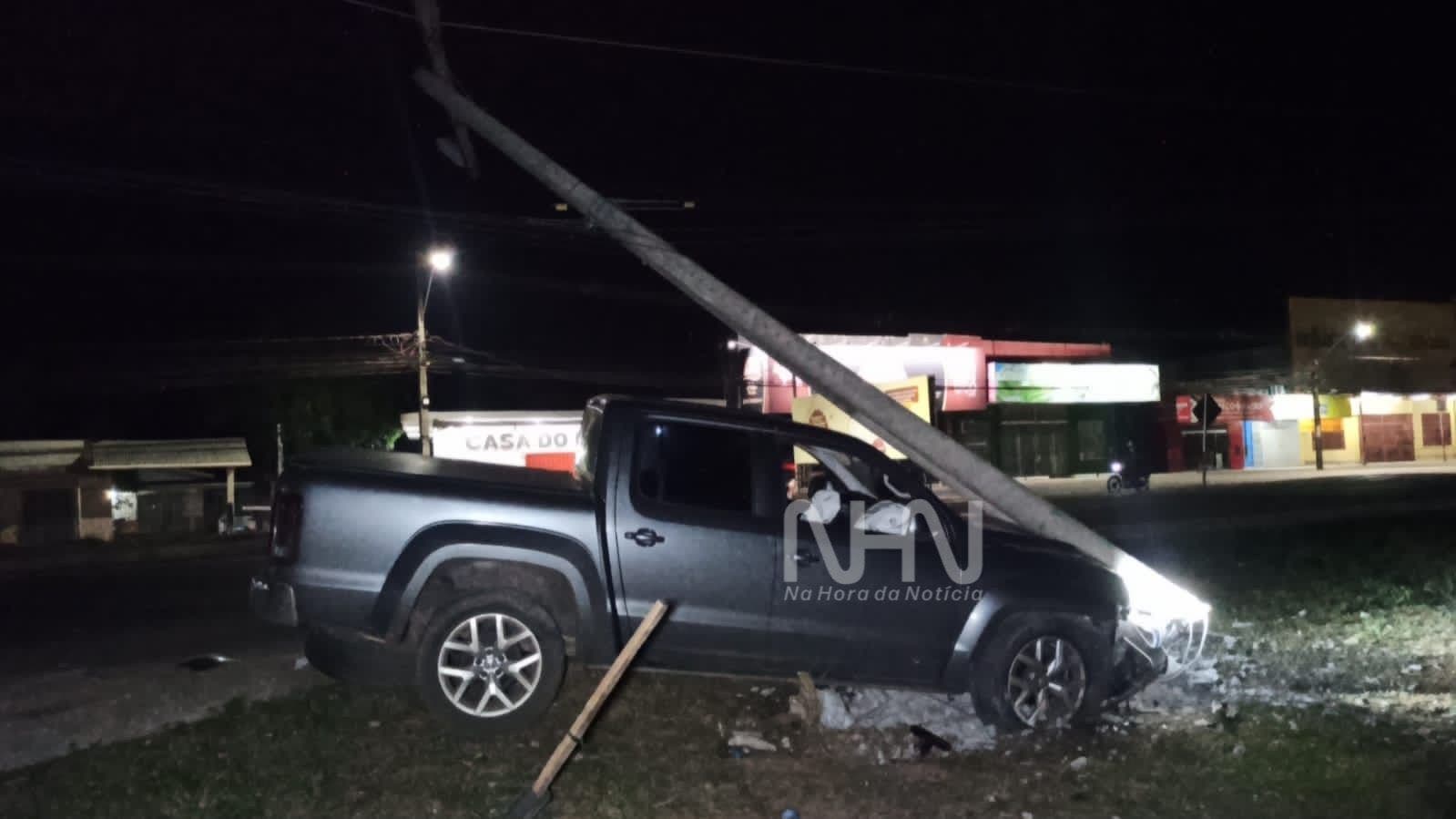 Uma caminhonete modelo Amarok atingiu um poste de energia na noite deste sábado (18), próximo ao Parque Chico Mendes, na região da Vila Acre, em Rio Branco.