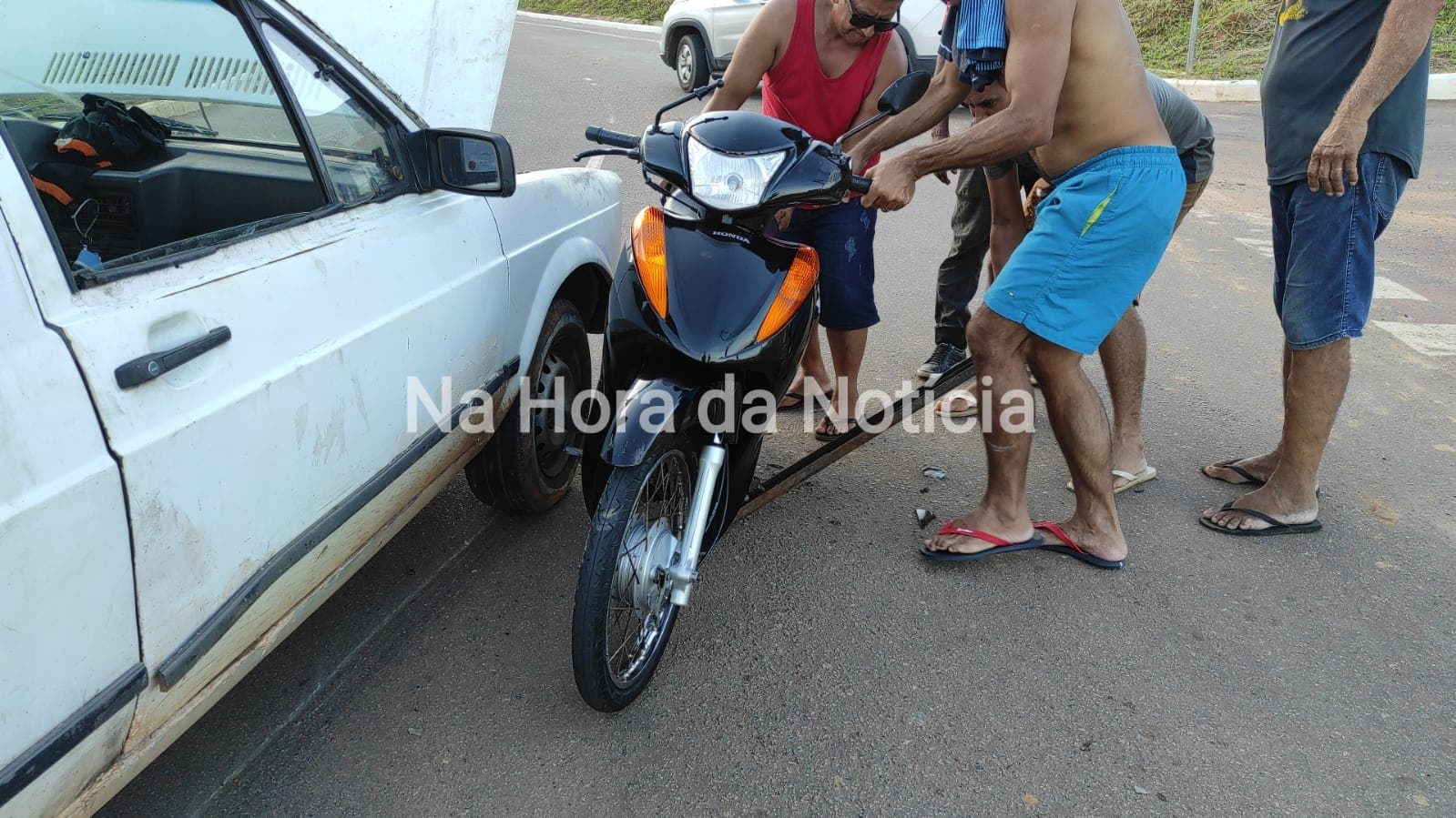 Com a força do impacto, a motocicleta foi parar embaixo do Pampa e as pernas direita de José e Mauricelia acabaram quebrando e tendo fratura exposta. Após a colisão, o motorista do veículo permaneceu no local e prestou socorro às vítimas do acidente.