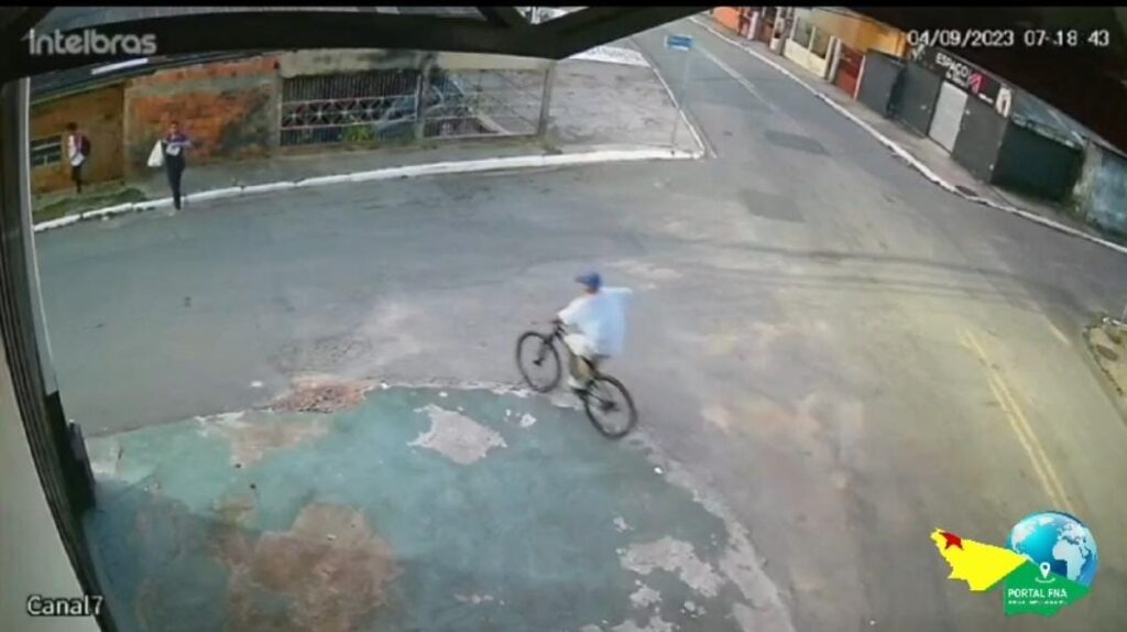 Nas imagens registradas por câmeras de segurança e possível observar que as duas caminham quando uma delas percebe que o ciclista, na verdade, é um criminoso que iria assaltá-las.