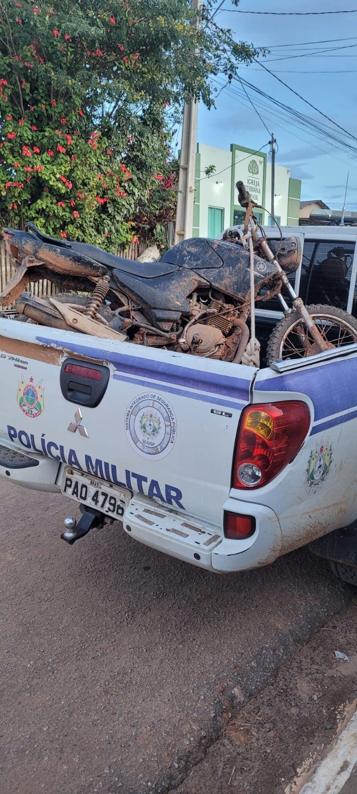 A segunda ocorrência se deu no município do Bujari, quando militares da Patrulha Rural realizavam Operação no ramal do Espinhara. A equipe visualizou a motocicleta Factor 125, de cor preta e sem placa, parada em frente a uma escola.