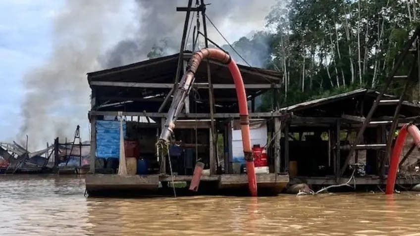 A operação identificou dragas e balsas de médio e grande porte utilizadas na exploração ilegal de minério, indicando uma atividade organizada e de alta capacidade extrativa, em contraste com práticas artesanais. Diante da impossibilidade de remoção, 49 embarcações e motores utilizados na mineração ilegal foram inutilizados no local.