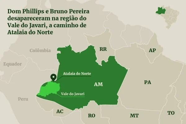 Segundo informações iniciais, Pereira e Phillips (foto em destaque) desapareceram quando faziam o trajeto entre a comunidade ribeirinha São Rafael e a cidade de Atalaia do Norte, na manhã desse domingo (5/6). A Unijava informou que os homens estariam indo visitar a equipe de vigilância indígena que se encontra próxima ao Lago do Jaburu.