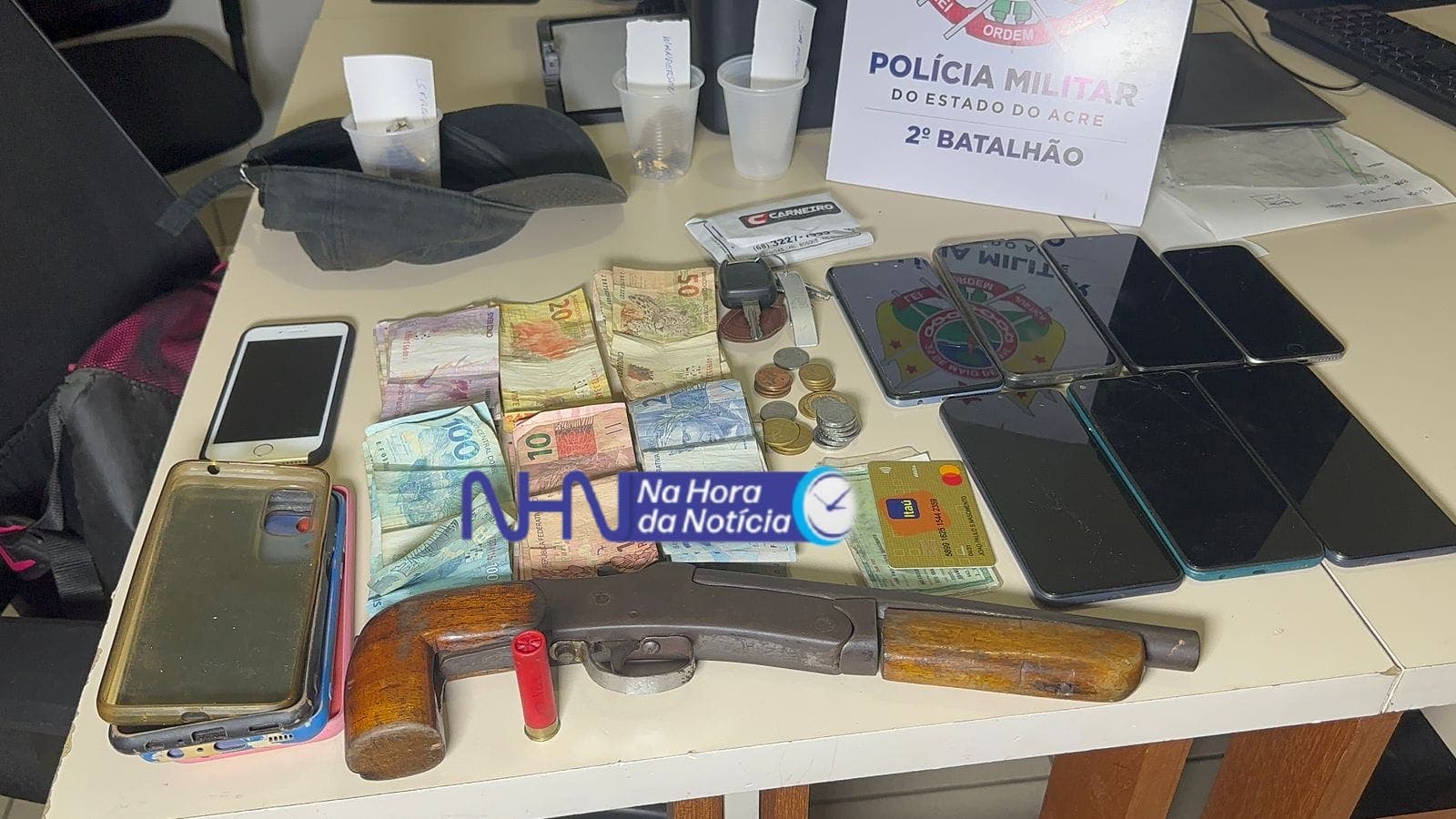 Samuel Oliveira Cunha, 18 anos, e Israel Silva de Oliveira Apurinã, 19, foram presos, e dois adolescentes de 16 e 17 anos foram apreendidos na noite desta quinta-feira (10), no Ramal do Rodo, nas proximidades do Benfica, na região do Segundo Distrito de Rio Branco.