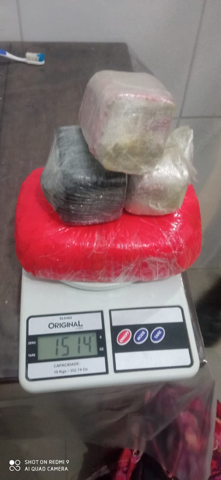 Com base nas informações obtidas de características dos envolvidos e local, os militares se deslocam ao endereço encontrando uma das suspeitas e com ela estava uma bolsa contendo 37 trouxinhas de, possivelmente, pasta a base de cocaína, 05 trouxinhas de cocaína e uma pequena quantia em dinheiro.
