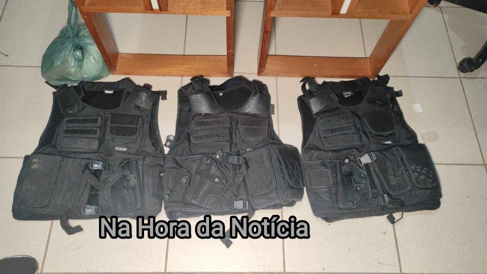 Ainda de acordo com a polícia, inicialmente os PMs pensaram que se tratava de violência doméstica, mas ao entrar na residência com a autorização das jovens, foi encontrado uma espingarda calibre 12 de repetição, com 19 munições intactas, uma pistola 380, que o homem que fugiu deixou cair próximo ao muro, 7 munições intactas de ponto 40, 23 munições intactas de 380, 22 munições intactas de 9 milímetros, 2 carregadores de pistolas, 146 gramas de skunk, 3 coletes balísticos, 2 balaclava (touca ninja), próteses ortopédicas, produtos para cabelo, suplementos alimentares, vários sapatos, tênis, videogame, caixa de som e entre outros materiais.