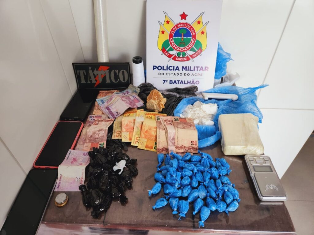 Seguindo uma denúncia de tráfico de drogas na cidade de Tarauacá, no inteior do Estado, uma guarnição do 7º Batalhão da Polícia Militar do Acre (PMAC) prendeu um homem, nesta quarta-feira, 28, e apreendeu drogas, dinheiro, celulares e material utilizado para preparar e embalar entorpecentes.