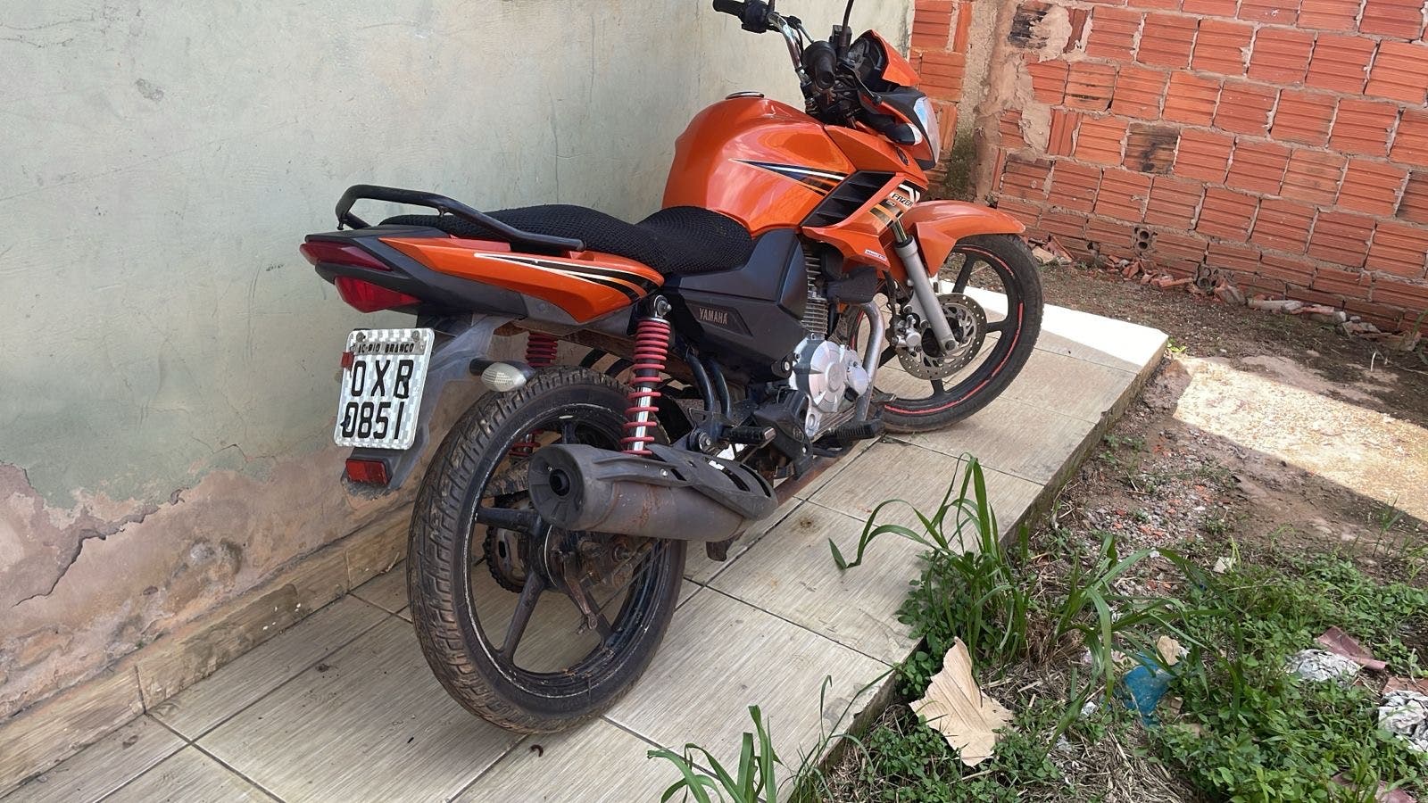 De acordo com a Polícia Militar, durante patrulhamento na Travessa das Árvores, no bairro Belo Jardim I, a guarnição se deslocou até uma residência já monitorada por intensa movimentação criminosa. No local, os agentes encontraram uma Yamaha Fazer 150, de cor laranja e placa OXP-0851, com placa adulterada e restrição de roubo, estacionada na varanda do imóvel.