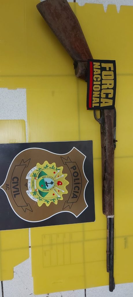 O trabalho conjunto entre a Polícia Civil e a Força Nacional de Segurança Pública, nos municípios de Brasiléia e Epitaciolândia, vem surtindo efeito, pois resultou na identificação do autor de um homicídio ocorrido na cidade Colônia Vitória 2, área rural de Epitaciolândia e na apreensão de um rifle calibre .22.