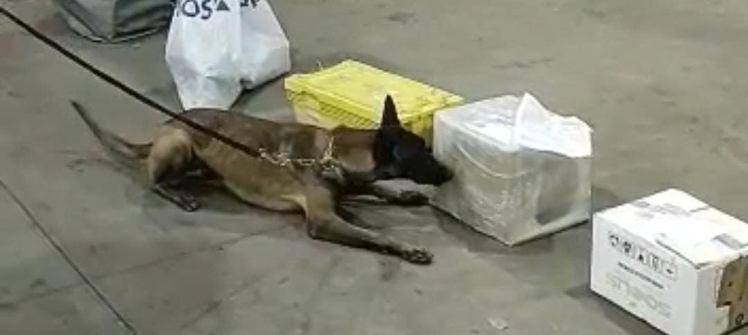 O trabalho de rotina dos cães policiais Gana e Narco identificou a caixa que estava no pátio de despacho de cargas do Correio. A carga estava envolta em papel filme – pvc, acondicionada dentro de balões plásticos e misturadas a pedaços de canela, além de estarem sujas de graxa, para dissimular o odor e evitar quaisquer tipos de fiscalização.