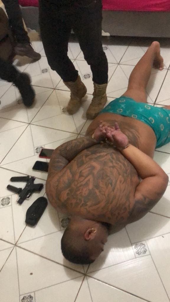 O preso, com dois mandados de prisão em aberto por organização criminosa e homicídio, tambem é investigado pelos crimes de homicídio, roubo, organização criminosa e tráfico de drogas.