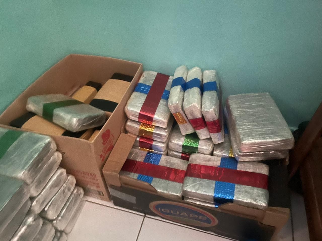 Os militares foram até a calçada e, ao olhar dentro da bolsa, encontraram uma grande quantidade de skunk. A casa ficou aberta e os policiais entraram na residência, onde encontraram mais drogas. Pelo menos 80 kg foram encontrados no local.